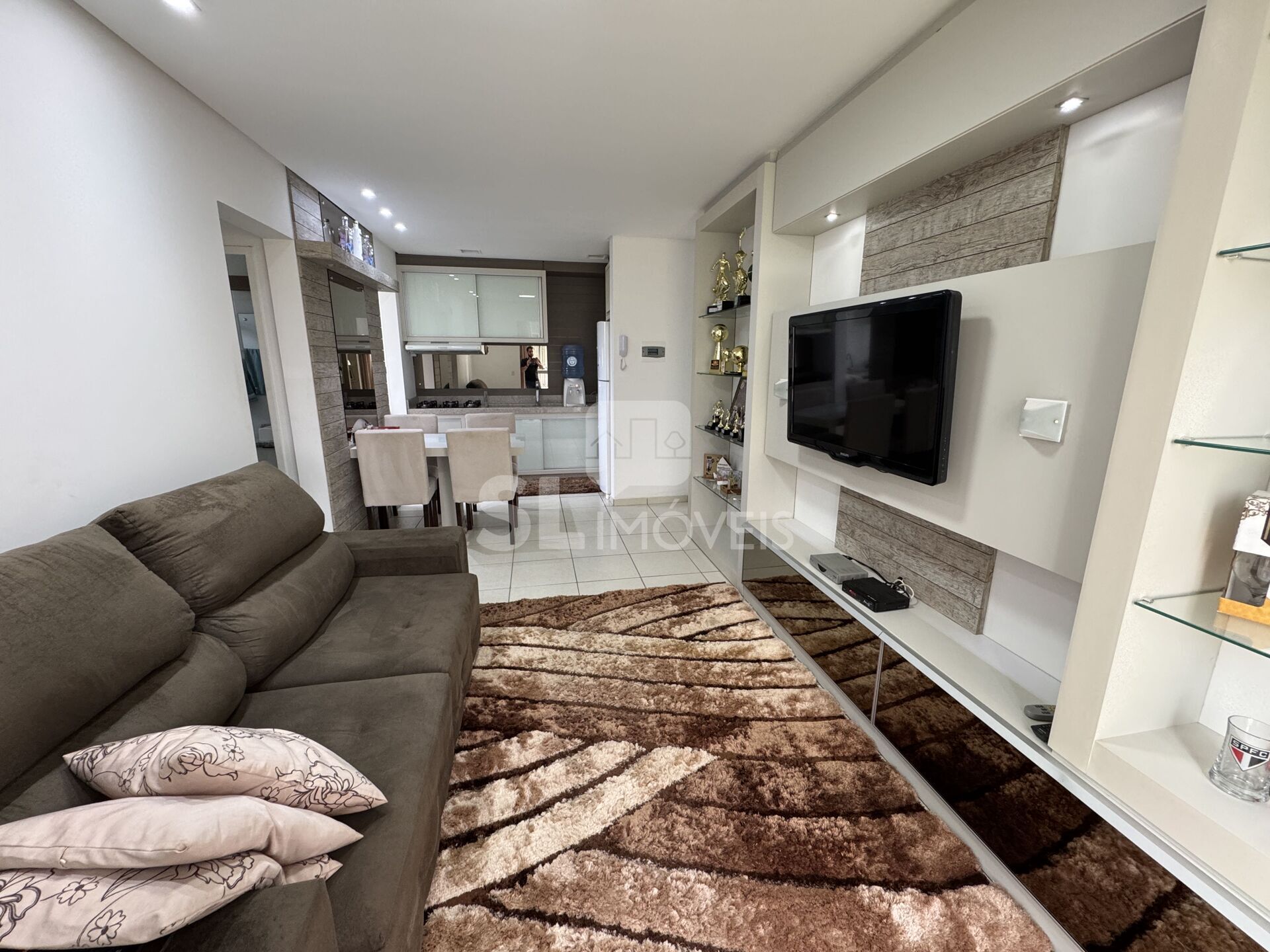 - Sala e Cozinha Mobiliadas: Ambientes integrados e completos, com móveis planejados, proporcionando praticidade e funcionalidade.