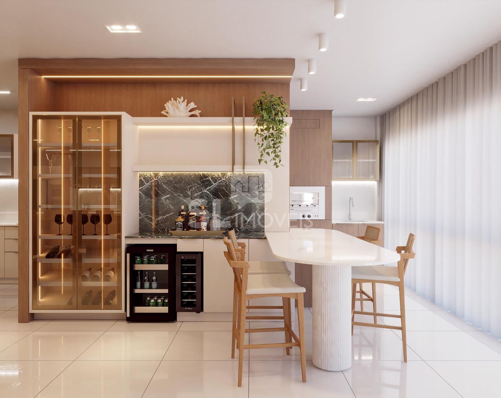 - Cozinha planejada e área de serviço equipada.