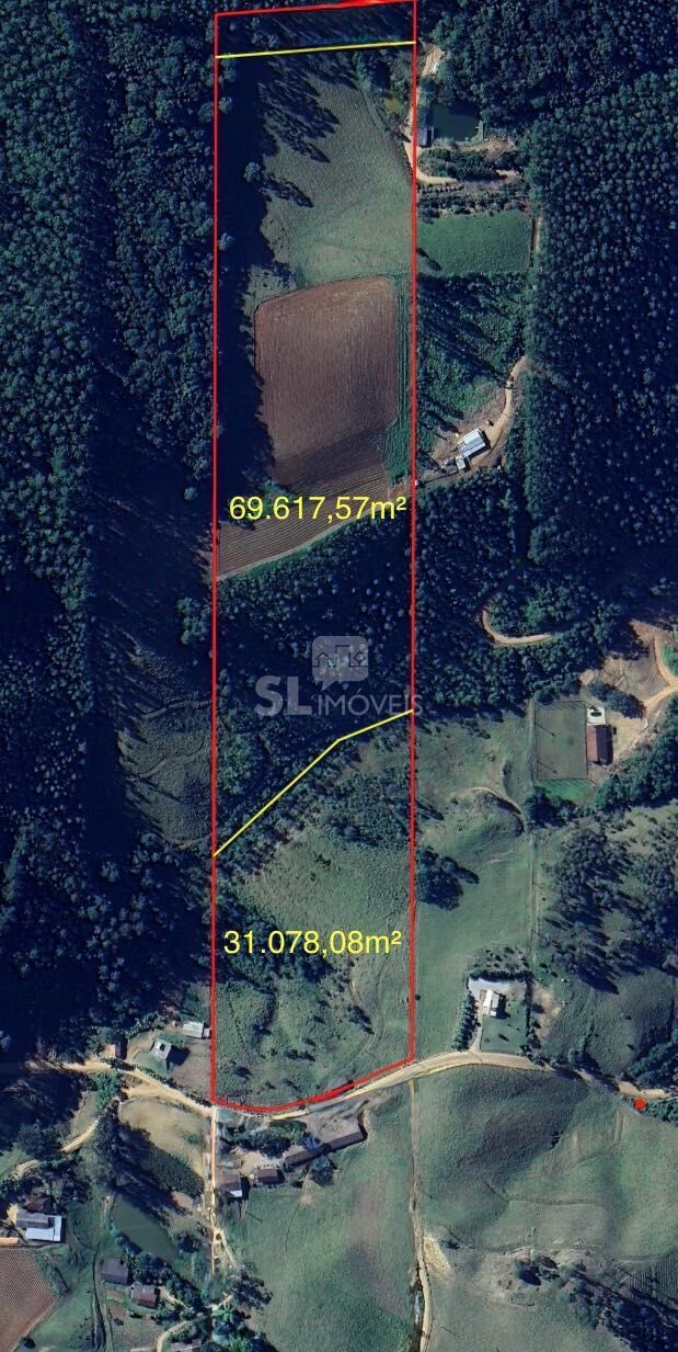 - Terreno 2: aos fundos, ideal para plantio e pastagem, com área de 6,9 hectares.